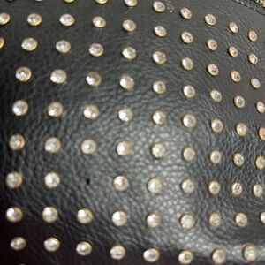 Bebe faux leather black mini backpack with rhinestones and gold studs accents