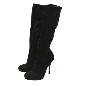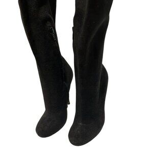 Bebe faux suede black stiletto heel tall pull on glam night out boots size 6
