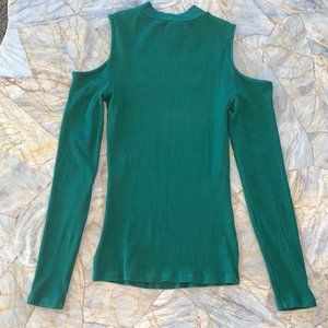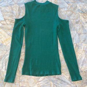 Bebe green Gorgeous Long Shirt Blouse Top Cold Shoulder Small