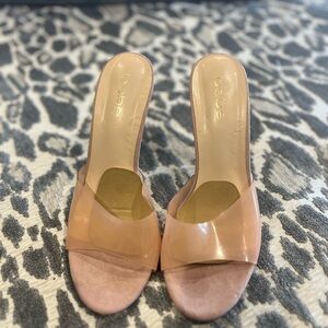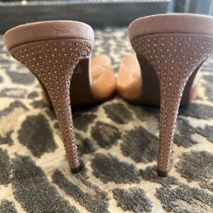 Stylish pair of bebe heels adorned with sparkles on the stiletto.