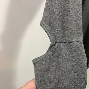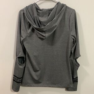 Bebe hooded long sleeve with open elbows, size small great condition, fun fabric