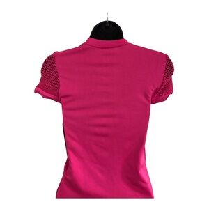 bebe hot pink mesh rhinestone bebe logo scuba fit stretch active top size XS/S