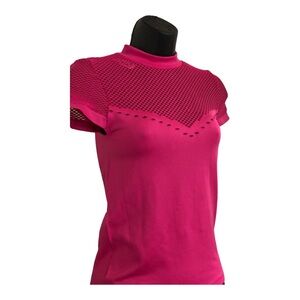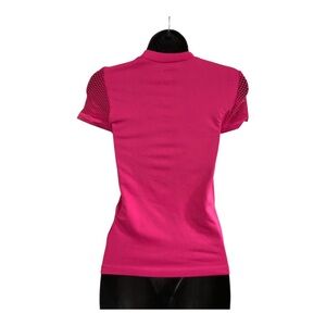 Bebe hot pink mesh rhinestone bebe logo scuba fit stretch active top size XS/S
