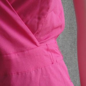 Fully lined, hidden back zipper. Belt is missing. 100% polyester. Inseam 3".