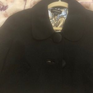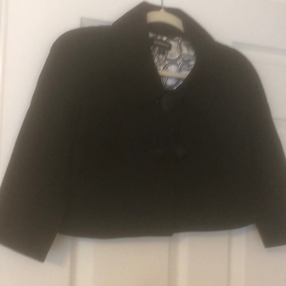 Bebe black short jacket, slits in back. Oversize buttons in front