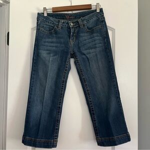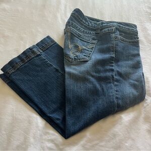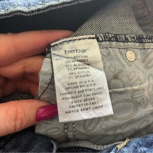 Bebe cropped jeans , good preowned condition. One pocket has less diamonds than the other pocket.