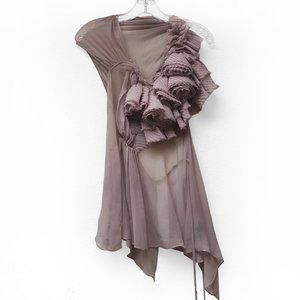 Bebe mauve pale blush rose sheer mesh romantic y2k 3D flower top