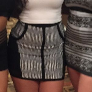 Black and white Bebe mini skirt mesh cut outs on the sides
