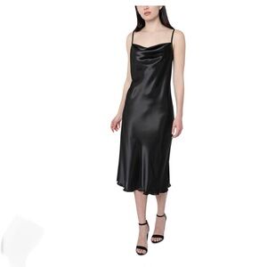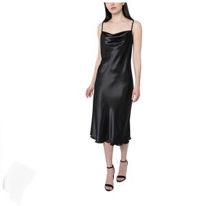 Bebe satin effect cowl neck black spaghetti strap bias cut slip midi dress size large brand new