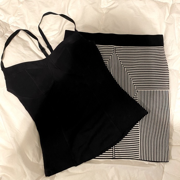 Cute Bebe set only worn a few times. Bandage skirt with black corset like top