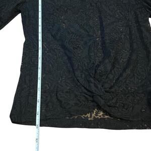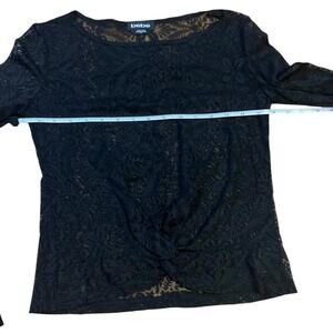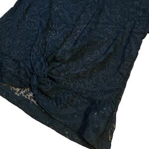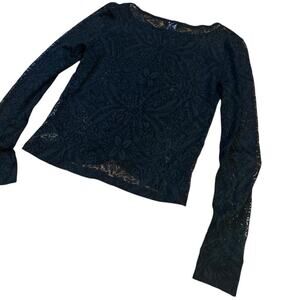 Bebe Sheer Black Lace long sleeve top with twist detail