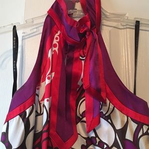 Beautiful, colorful halter top. Buttons behind the neck & has keyhole opening in front. Missing one button & one is loose.
