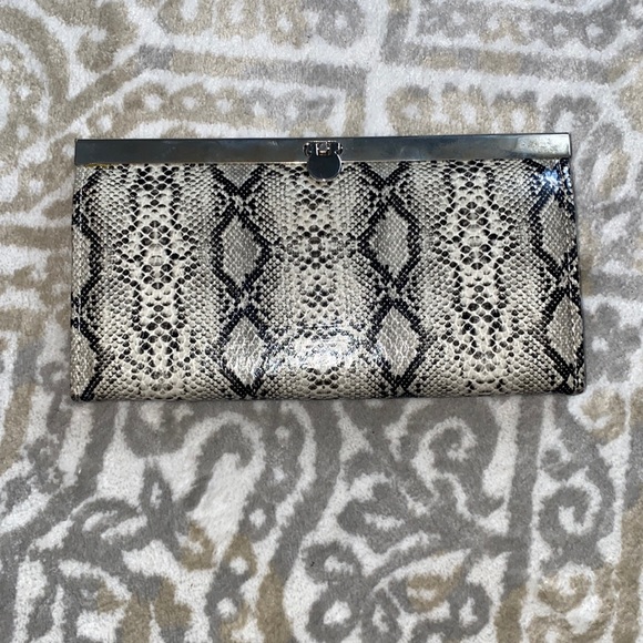 Bebe wallet with multiple compartments inside. Rusting and scratches to back and front of metal as shown. Not sure if it can be repaired. Really cute wallet for a night out!