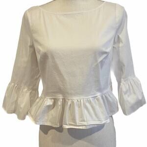 Bebe white button back bell sleeve peplum top xs