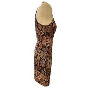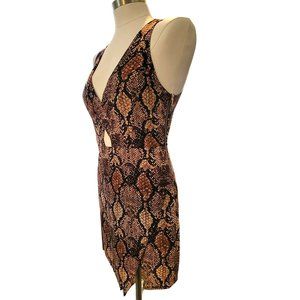 Bebe x Naven Dress Brown Black Faux Snakeskin Bodycon Deep V Mini Size 8 VR607