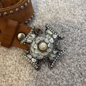 Bebe y2k Suede Studded Belt with Pearl Beaded Buckle Size M/L