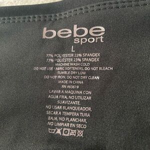 Bebe cute side logo stripe black Capri leggings size large in great condition. Length is 20”, rise is 11” .