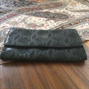 Bebe Clutch Black Leather Snake Skin Print Envelope Bag Purse