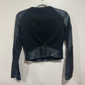 In excellent condition. A perfect moto jacket in a sleek collarless design.