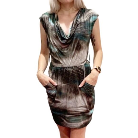 Bebe Dress, Abstract Design Pockets XS