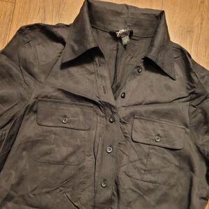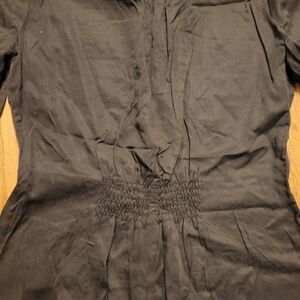 Excellent condition. Cute Romper. cuffed legs with button on the side. Sleeves can be rolled up or down. Has 2 fake front bottom pockets and 2 top pockets. Elastic in the back. Bust Measurements laying flat is 18 inches. Waist is 15 inches and Inseam is 2.5 inches.