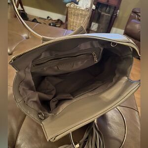 Bebe Leather Metal Handled Handbag Tassel Purse