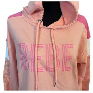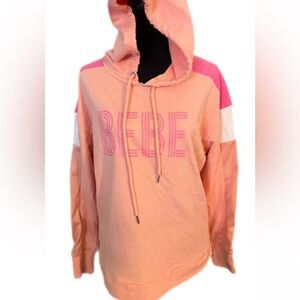 Bebe Long Sleeve Shirt with Hoodie, Pink. Size Large
