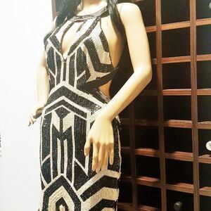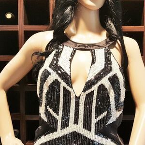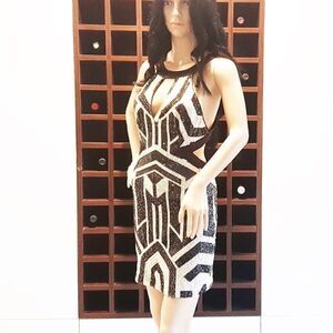Bebe Rare Aztec Sequin Cut Out Embellished Mini Dress S/P