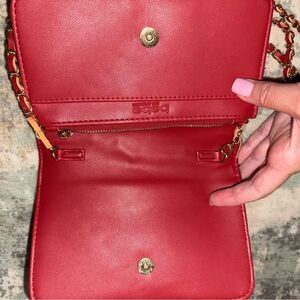 Bebe Red Quilted Crossbody Bag with Chain Strap
