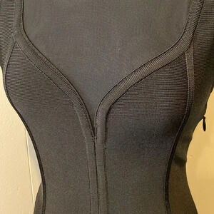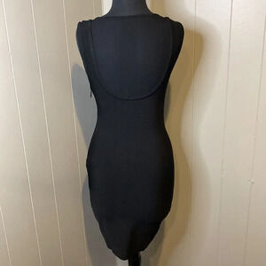Bebe Small Mini Cocktail Dress Crewneck Mesh Chest Lining Side Zipper Banding