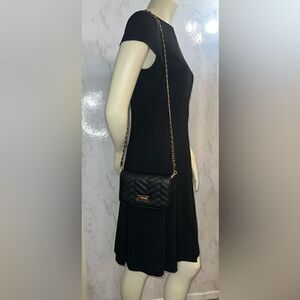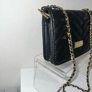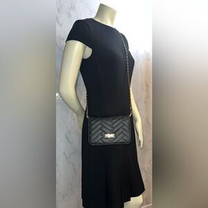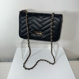 Bebe Black faux leather crossbody bag in a distinctive quilted herringbone design.