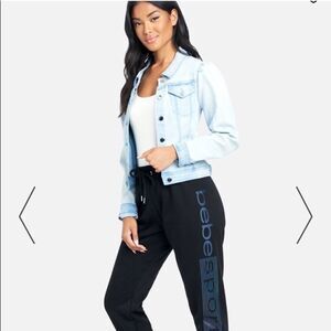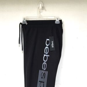 Bebe Sports joggers logo stripe sweat pants In black with iridescent “Bebe Sports” graphics down the side of pant leg. Black M New NWT
