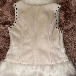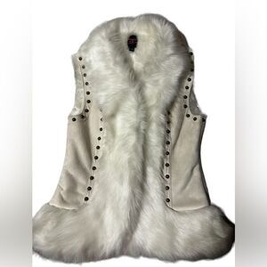Bebe White Faux Fur Vest with Studded Trim – Size M –