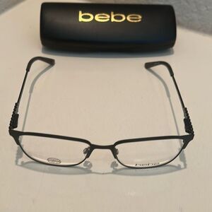 Bebe Women's Eyeglasses Jet Black Full Rim Square Frame Clear Demo Lens BB5155