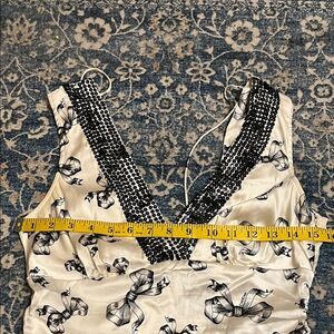 Bebe Y2K Silk Blend White Black Sequin Bow Design V-Neck Top Feminine Coquette