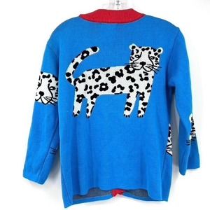 Bebebebe Kids L Tiger Sweater Cardigan Button Front Cotton Blue Orange