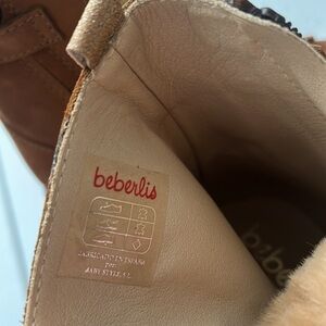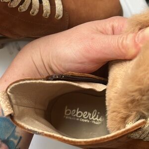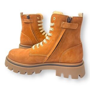Beberlis Cognac Brown Suede Shearling Lace Up Combat Boots w/ Lug Soles NEW