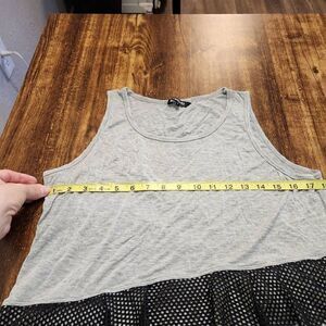 Bebe Sport gray sport tank with black mesh ruffle. Size medium.