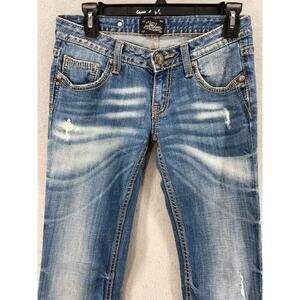 Good Day! I am selling: Bebock for Express Jeans Womens Sz 2 Boot Cut Denim Distressed Whiskers