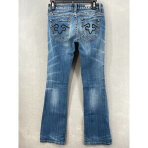 Bebock for Express Jeans Womens Sz 2 Boot Cut Denim Distressed Whiskers