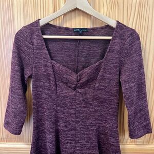 Bebop Be You Be Free maroon purple knit sweetheart neck 3/4 sleeve dress S