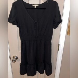 Bebop black mini dress. Ruffle bottom. V-neck, tie closure. Elastic waist. Like new.