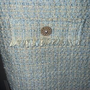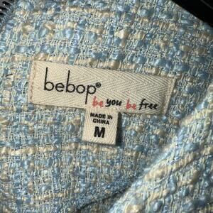 Bebop New Blue Cream Sparkle Tweed Short Sleeve Pearl Button Trim Sheath Dress Womens Medium