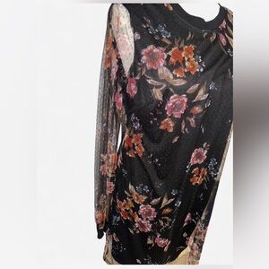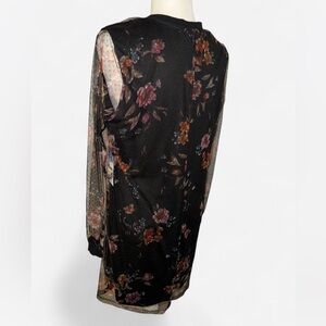 Black sheer floral mesh long sleeve dress with sheer sleeves
