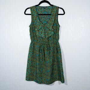 Bebop Green Peacock Feathers Ruffle Top Dress Size Medium