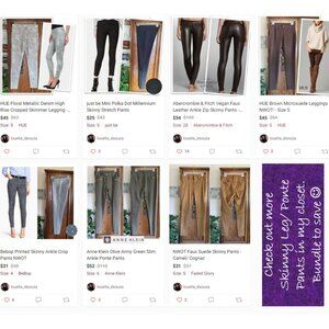 FEATURES: Front slash pockets, Zip fly, hook closure, Skinny ankles