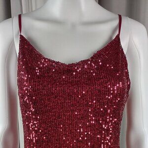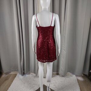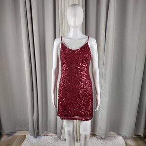 Bebop Red Sequin Spaghetti Strap Scoop Neck Mini Dress Party Glam Size Small