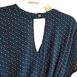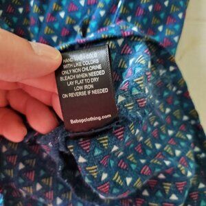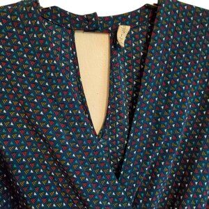 Faux Wrap at the top with key hole snap at the back, pockets at the side.