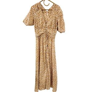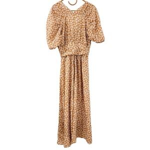 Bec & Bridge 100% cotton balloon sleeve tan floral button front midi dress EUC
