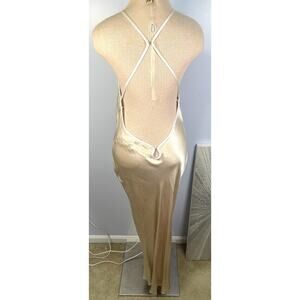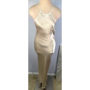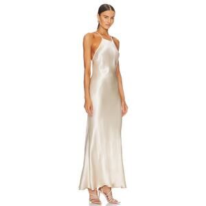 Bec + Bridge Indi Halter Neck Cross Back Sand & Ivory Maxi Dress Size 6